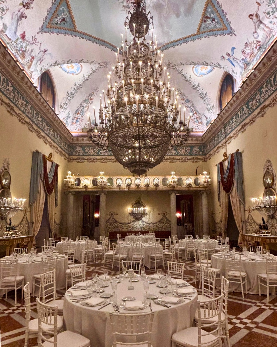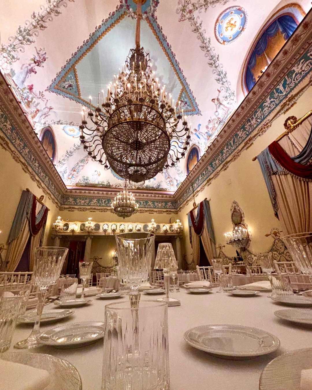 Tra vasti cortili comunicanti si snodano le sue sale,di grande impatto e pronte ad accogliere un gran numero di ospiti.